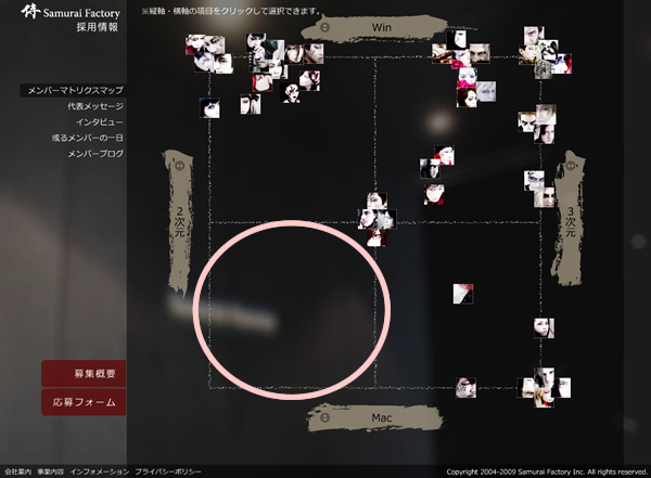 これで、サムライファクトリーメンバーの様々な属性が視覚的に解っちゃう!という、サムライファクトリーの社風やメンバーの傾向(?)に興味のあるかたには喜んでいただけそうなコンテンツです。