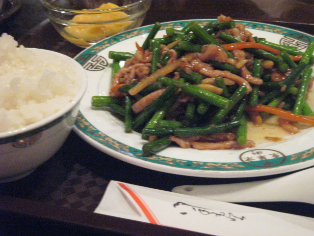 細切りピーマンと肉炒め定食。