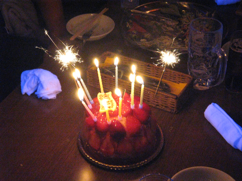 kayoさん、マタノさん、Jeromeさんの誕生日会のケーキ。