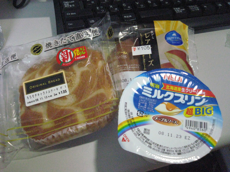 甘いものが食べたくなって上の2つを買ったら、セブンイレブンのキャンペーンで三角くじが引けて、右下のプリンが当たった。