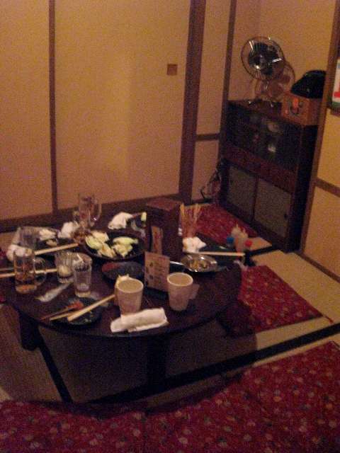ちゃぶ台を囲んで食事をする、まさに昭和の家庭のような部屋。