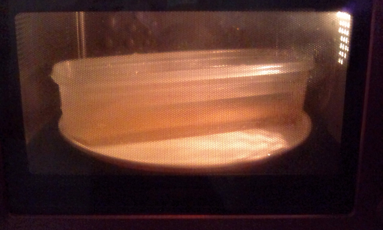 今回の場合は、パスタの目安の茹で時間5分+レンジでパスタ推奨の5分、全部で10分。