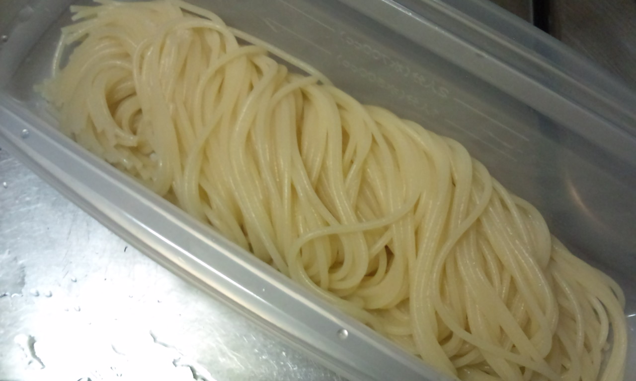 電子レンジでパスタを茹でておけるので、僕のようなスペックのキッチンでも安心。