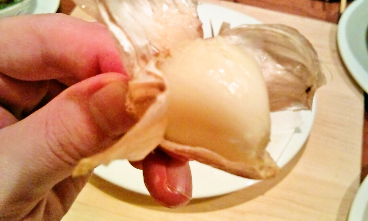 アツアツの皮を、指をあま火傷しながら剥いたら、ホックホクのニンニクが顔を出します。