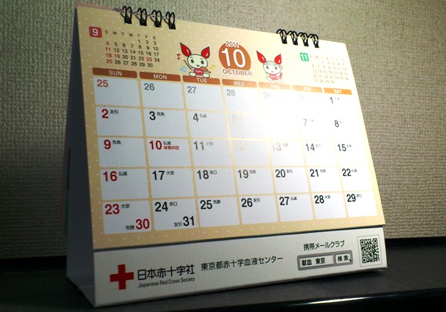 普段は手帳か、献血の時にもらった東京都赤十字血液センターの卓上カレンダーくらいしか使っていませんが。