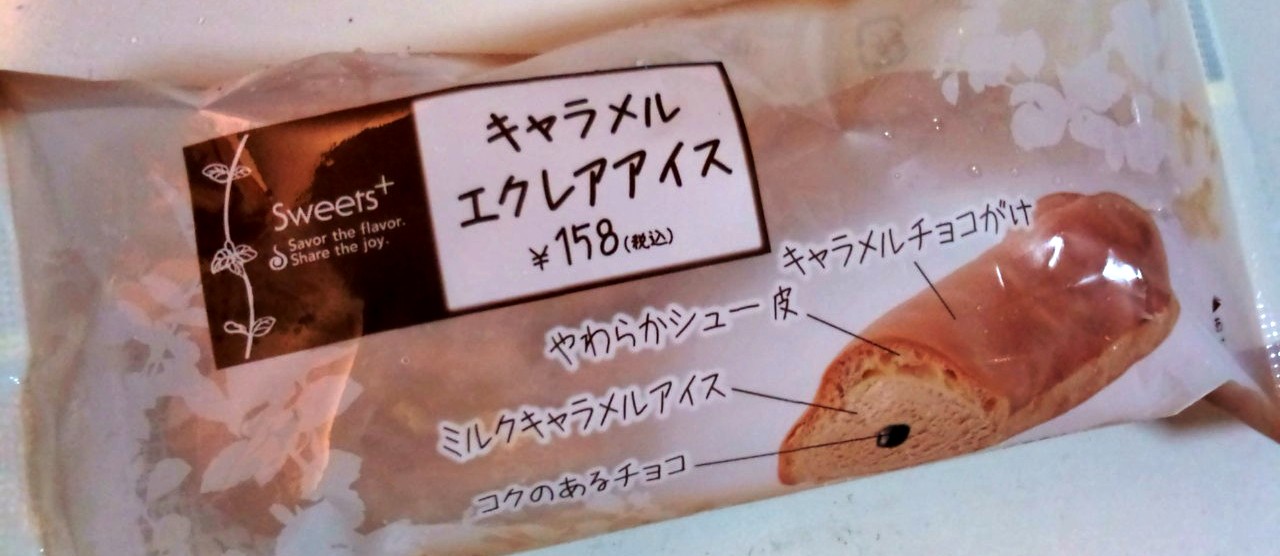 キャラメルエクレアアイス|アイス|Sweets+|商品情報|FamilyMartアイスクリームのクーラーボックスの中で、かなり異質な雰囲気を漂わせるこのパッケージ。